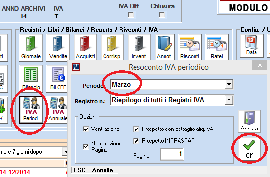 3. cliccare sul bottone "IVA Period." e selezionare il trimestre IVA da liquidare