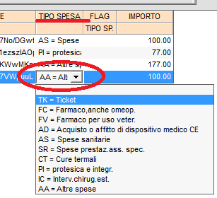 Modificare la tipologia di spesa cliccando sulla colonna "Tipo spesa" del documento di spesa da modificare