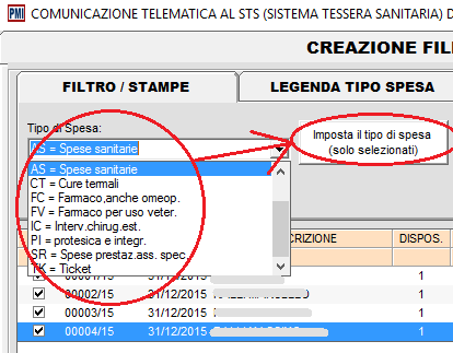 In alternativa è possibile modificare la tipologia di spesa per tutte le operazioni selezionate con il bottone "Imposta il tipo di spesa (solo selezionati).