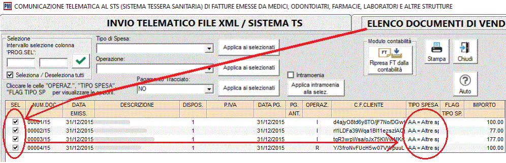 Cliccare sulla scheda "ELENCO DOCUMENTI DI VENDITA DA INVIARE" e verificare i documenti selezionati e la corrispondente tipologia di spesa.