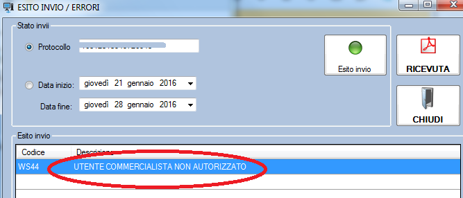 Nel caso di errore "Utente Commercialista non autorizzato" o simile accertarsi che la procedura di delega al commercialista si sia perfezionata.