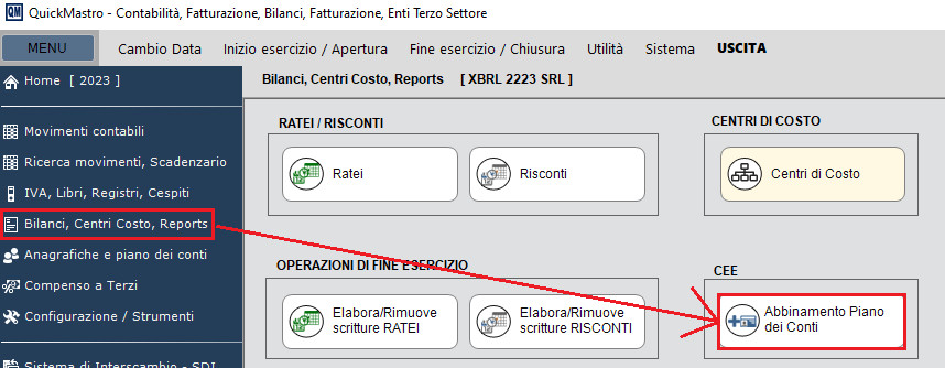 Quickmastro consente di creare il bilancio CEE in due modi: