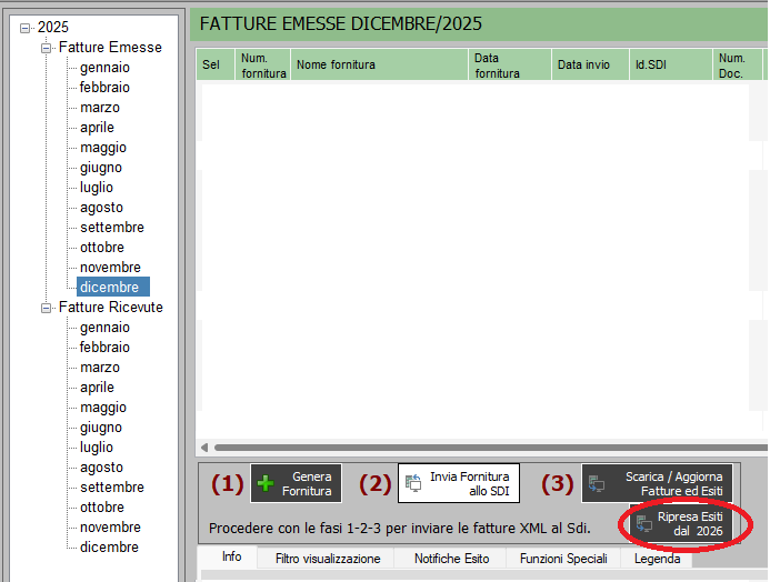 - Verificare che gli esiti siano stati correttamente associati alle fatture dell’esercizio 2025.