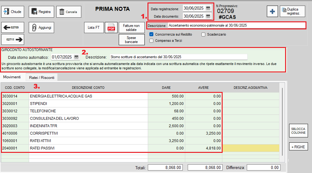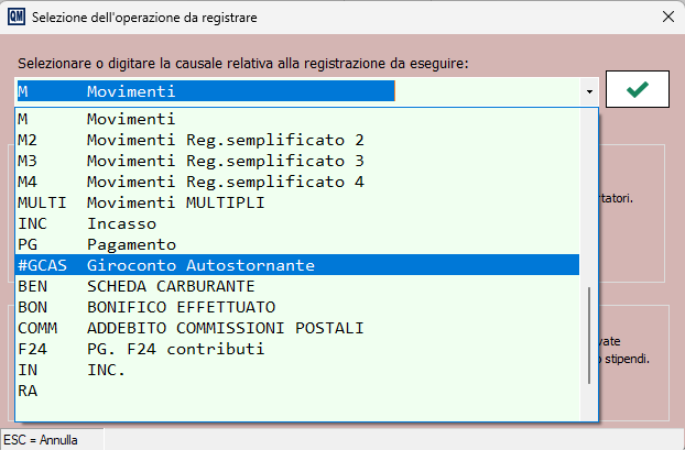 Selezionare la causale contabile #GCAS Giroconto Autostornate
