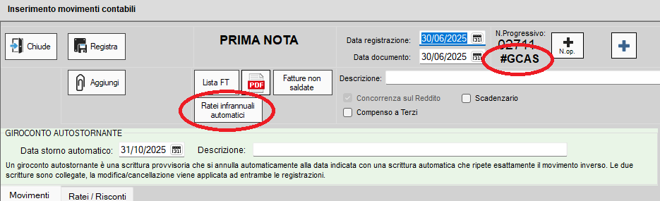 oppure è possibile generare automaticamente la scrittura con la funzione "Ratei infrannuali automatici"