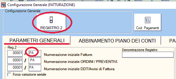 Configurare il modulo fatturazione in modo da utilizzare, se possibile, un registro sezionale esclusivamente per l'emissione delle fatture elettroniche destinate alla Pubblica Amministrazione (es. il registro vendite n.2) .