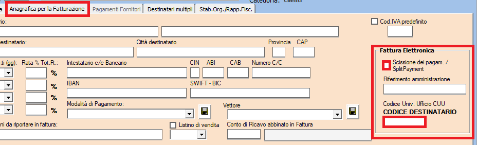 Nella scheda anagrafica del cliente (PA) è presente una sezione denominata "Anagrafica per la fatturazione" nella quale è possibile indicare: