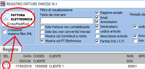 2. Generare il file XML con il bottone "FATTURA ELETTRONICA (Crea/Modifica)"