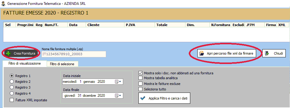 3. Accedere alla funzione "Sistema di Interscambio" --> cliccare sul tasto “Genera Fornitura” e selezionare il file da firmare.
