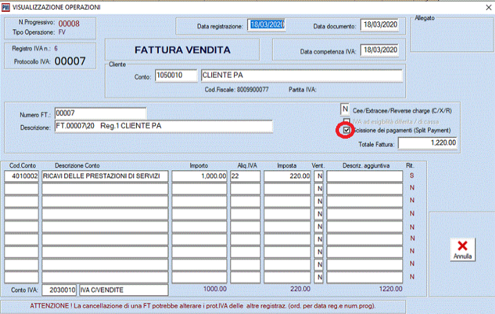 FIGURA 1: registrazione di una fattura di vendita con opzione "SPLIT PAYMENT"