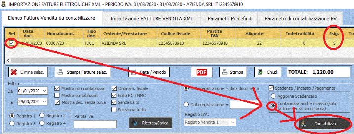 FIGURA 3: incasso della fattura tramite la funzione "Importazione FE XML" ---> flag "Contabilizza anche incasso" --> bottone "Contabilizza"