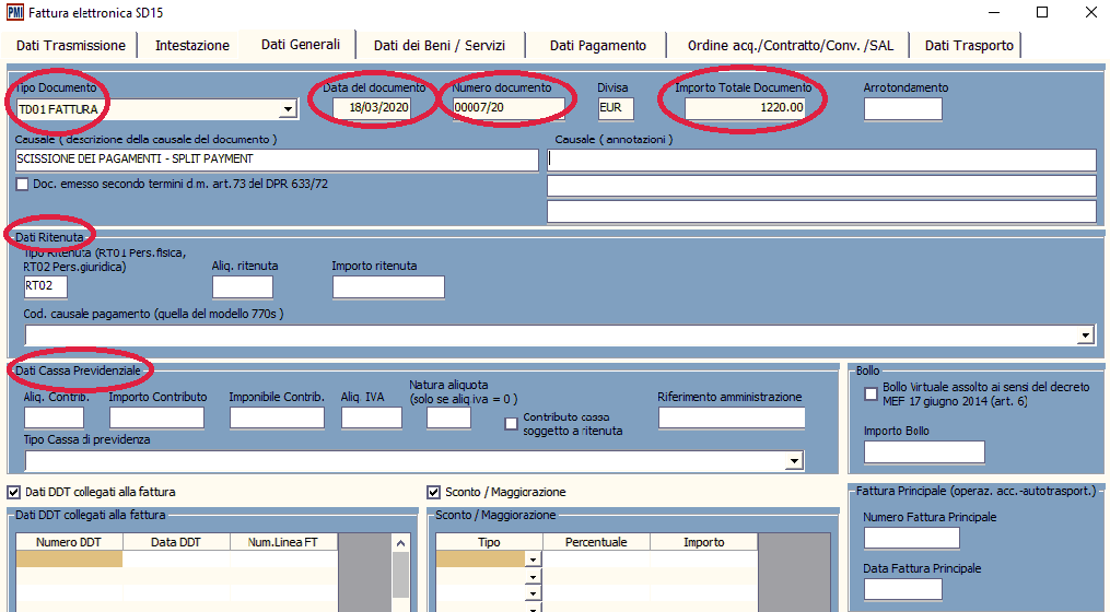 Integrazione delle fattura ordinaria con i dati aggiuntivi: