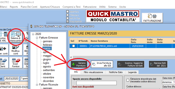 2. Cliccare sul tasto "Genera Fornitura"