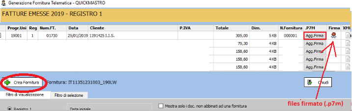 3. Generare la fornitura avendo cura di allegare il file firmato (quello con estensione .P7M) --> cliccare su bottone "Crea Fornitura"