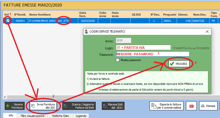 5. Cliccare sul tasto "Invia Fornitura allo SDI"