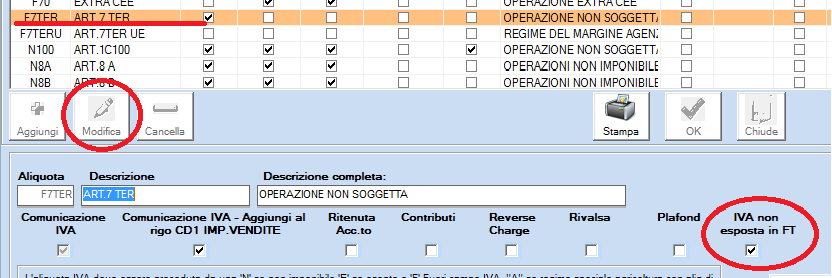 - aprire la finestra per la gestione delle "aliquote IVA";