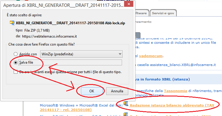 Selezionare ad es. il tool relativo al bilancio abbreviato e salvare il file sul proprio pc.