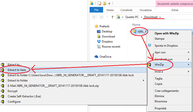 Il file scaricato (generalmente nella cartella download) deve essere "aperto" con Winzip (ovvero 7-zip o applicazioni simili).