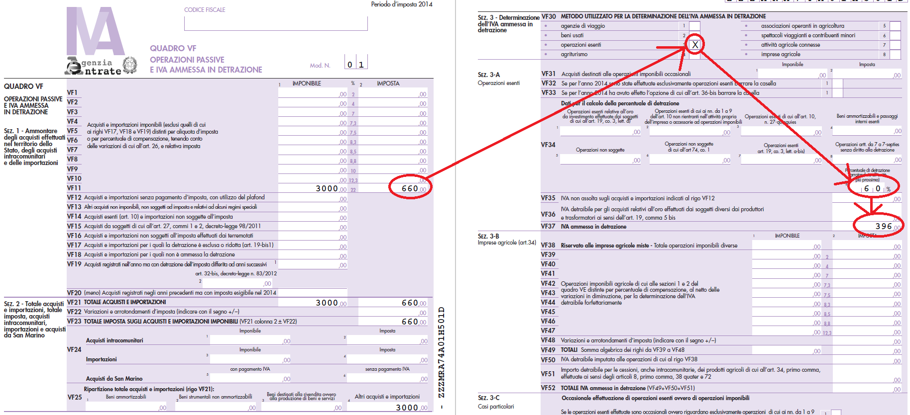 Nell'esempio le fatture esenti emesse nel corso dell'esercizio sono state pari al 60% delle fatture emesse.