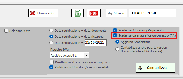 Attivando questa opzione, il programma genera in automatico una scadenza all’interno dello scadenzario, utilizzando le informazioni contenute nel file XML della fattura elettronica.