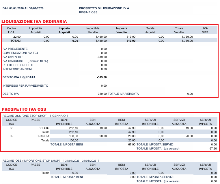 Liquidazione IVA e Prospetto IVA OSS
