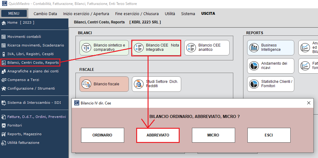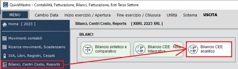 Quickmastro consente di creare il bilancio CEE in due modi: