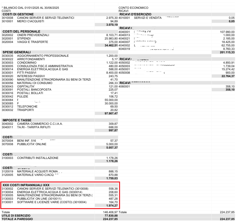 Selezionando le voci di costo e di ricavo da accertare, tale differenza sarà riportata nel bilancio infrannuale in modo automatico.