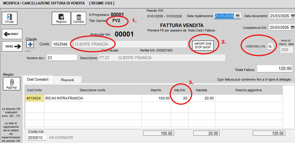 Regime OSS - Registrazione fatture di vendita
